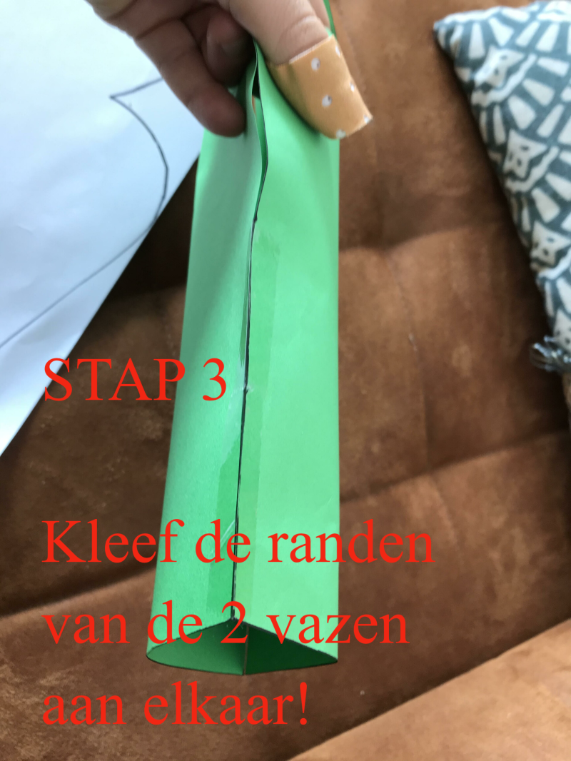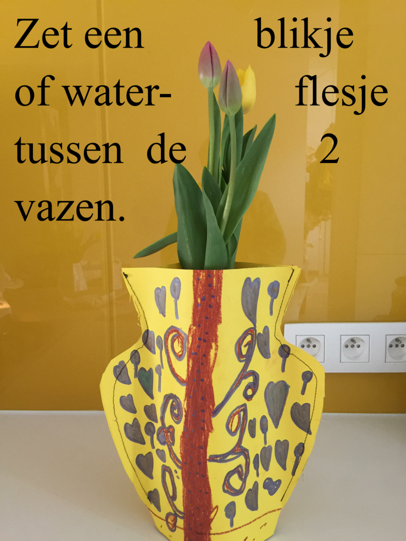 Teken er een vaas op. Leg de vaas op het andere blad Kleef de 2 randen aan elkaar vast.